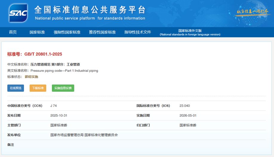 GBT 20801.1-2025工业管道分级变化的解读